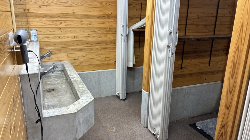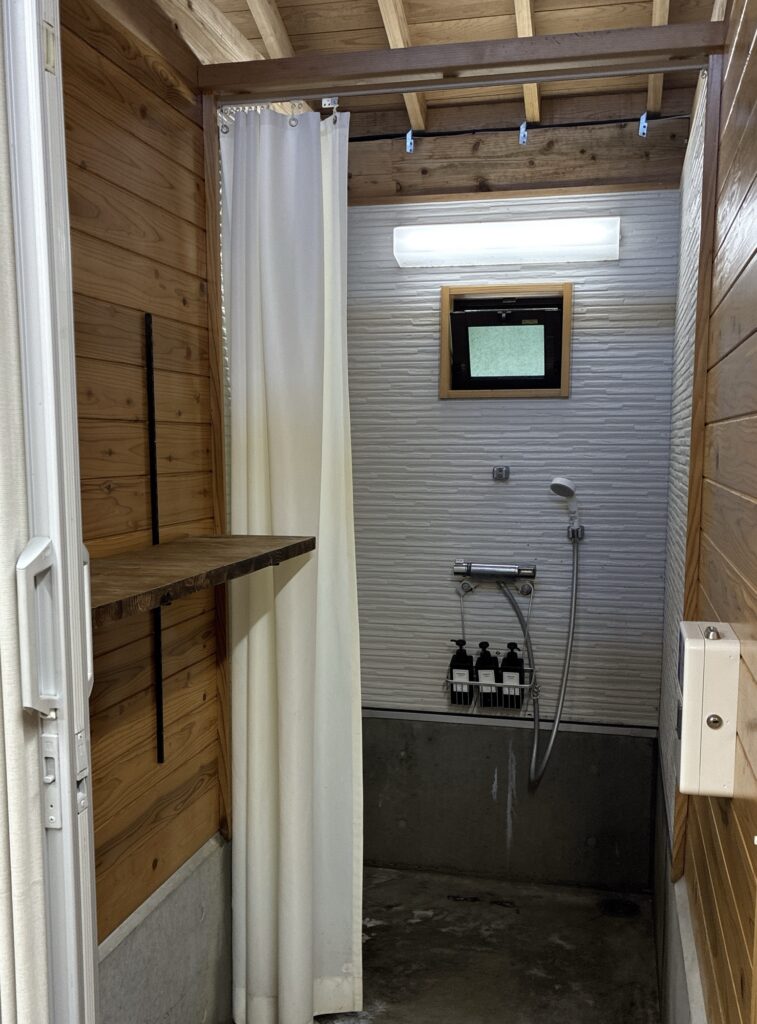 ここで注意点ですが、基本、虫が入らないようにドアが閉めてあるので、暑い時期のシャワー室はひどく熱気がこもります。ドライヤーを使うとさらに蒸し暑く汗びっしょり、なんてことも。これに関しては涼しい時期に利用するか、近隣の銭湯を利用するかしか方法はありません。